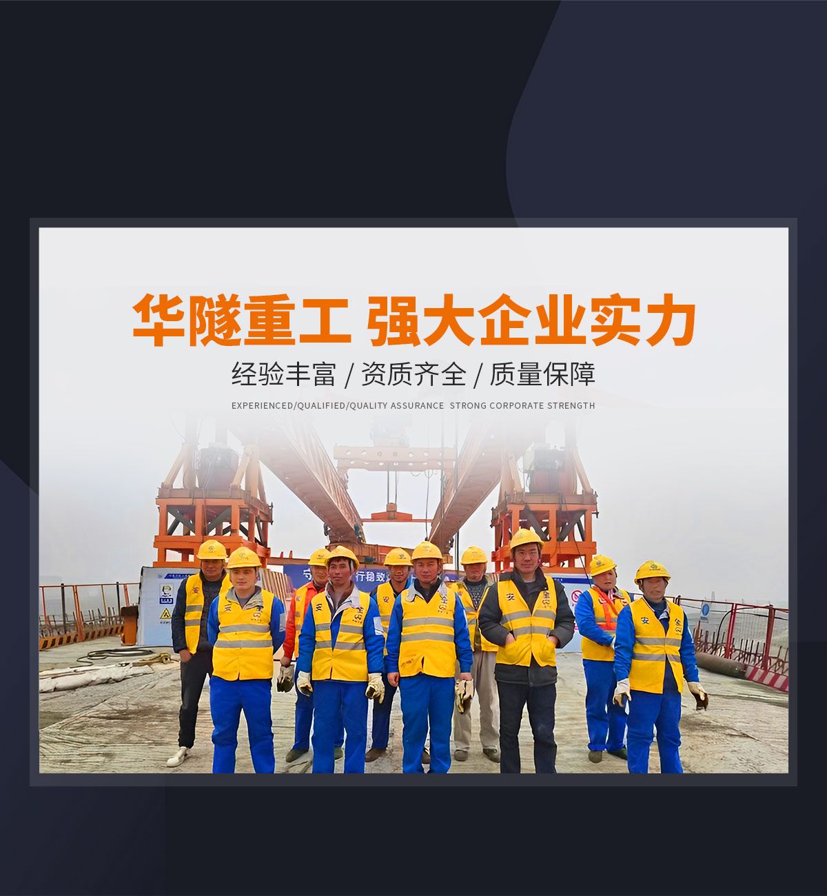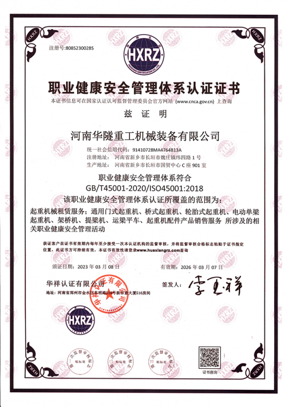 河南華隧重工機械裝備有限公司主要從事通用門式起重機、橋式起重機、電動單梁起重機,輪胎式起重機、架橋機、提梁機、遠梁平車、鋼絲繩電動萌蘆、卷揚機、起重配件制造、銷售:起重機械租賃、安裝和維修,起重設備園收,機械設備維修,鋼結構工程承包,橋梁工程及技術咨淘服務,銷售五金制品、機電設備:建設工程監理,建設工程設計,各類工程建設活動,建筑勞務分包,建筑物折除作業,施工作業,工程管理服務,土石方工程施工,裝如發運?! 」疽淹ㄟ^IS0國際質量、環境、健康與安全三合一標準認證,特種設備制造許可證和特種設備安裝改造維修許可證。擁有完熟的質量管理體系。嚴格的管理制度,強大的生產能力和先進的檢測手段,在保證產品質量的同時,也具備了極強的市場競爭力?! 」緢猿挚萍紕撔聻槔砟?,產品質量為核心,注重信譽,建立了減信可靠、快捷、思速。便利周到的售后服務網絡。  我們擁有的技術專家和技術服務隊伍為客戶提供充善的售前技術支持和全天候的售后服務體系,讓您無后顧之憂,享受一站式的超值服務?!  叭A隧重工,伴您成功“是華隧重工永遠的宗指,真被的希望與各界朋友攜手并進。共創輝準!